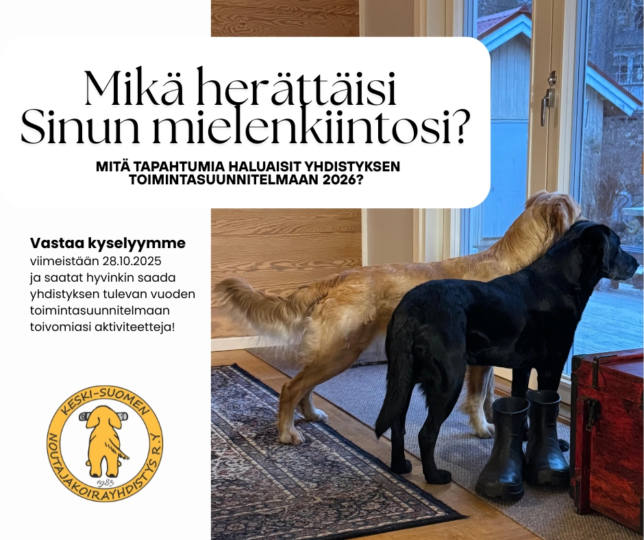 Me yhdessä rakkaudesta noutajiin haluamme tarjota erilaisia koulutuksia ja kokeita harrastajille ja metsästäjille lajista riippumatta! Jotta voimme tarjota erilaisia vaihtoehtoja harrastuksiin ja kokeisiin tarvitsemme teitä harrastajia avuksi talkoilemaan.