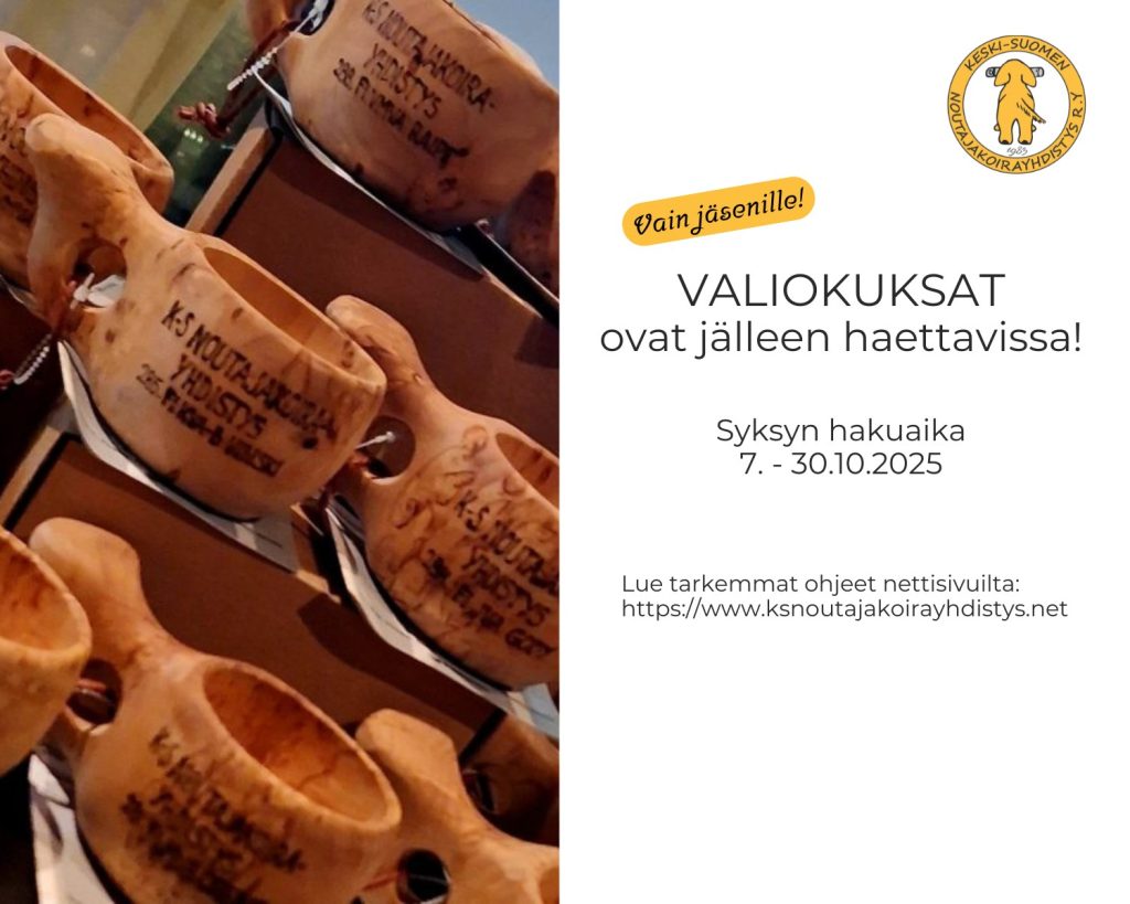 Keski-Suomen Noutajakoirayhdistys ry muistaa jäsentensä noutajien valioitumista valiokuksalla. Jos noutajasi on saavuttanut Kennelliiton hyväksymän FI-valionarvon, voit anoa valiokuksaa hienosta saavutuksestanne.