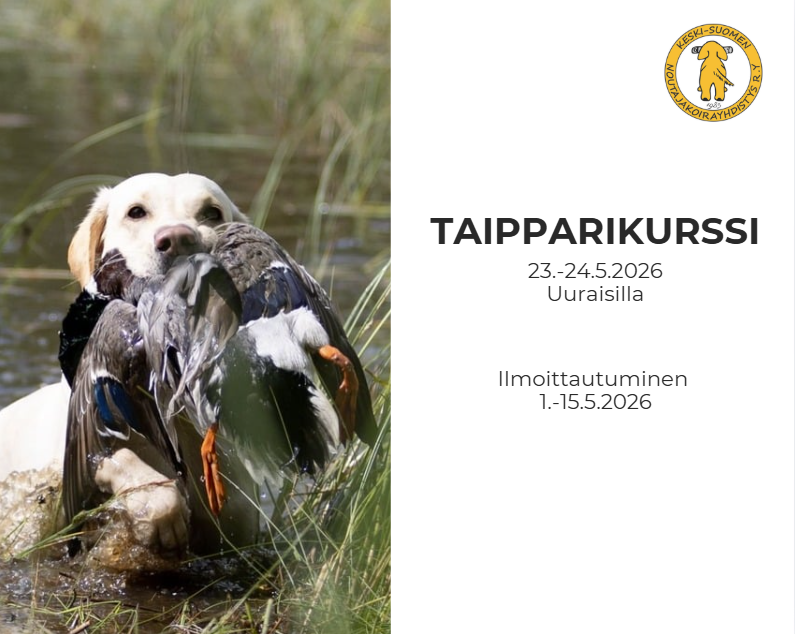 Keski-Suomen Noutajakoirayhdistys ry:n MEJÄ-mestaruuskoe. Lisätietoja ja ilmoittautuminen ks. https://tapahtumakalenteri.kennelliitto.fi