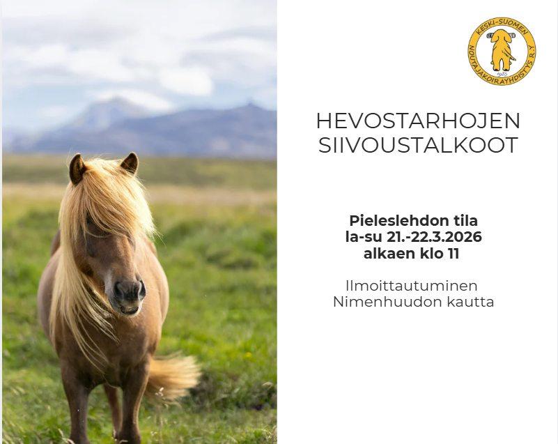 Pieleslehdon tila on kutsunut meidän auttamaan hevostarhojen siivouksessa viikonloppuna la–su 21.–22.3. klo 11 alkaen, ja toivomme mukaan mahdollisimman monta reipasta talkoolaista.