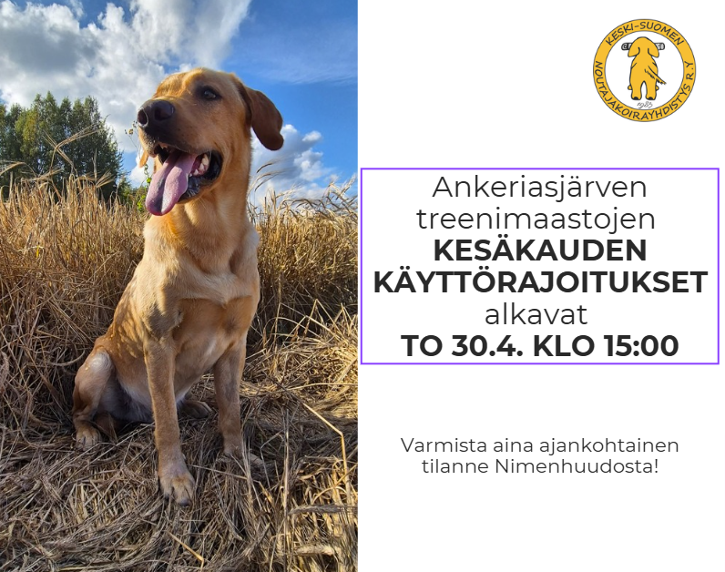 🐾 Kesän 2026 keskiviikkokoulutukset starttaavat 13.5.2026! 🐾 Koulutukset järjestetään Laukaassa ja tarkemmat tiedot koulutusmaastoista julkaistaan huhti–toukokuun aikana. Koulutukset on suunnattu…