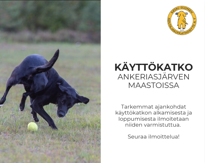 Tarvittaessa lisätietoja käyttökatkosta ja vaihtoehtoisista treenipaikoista voi kysyä Timo Halmeelta, nome@ksnoutajakoirayhdistys.net.